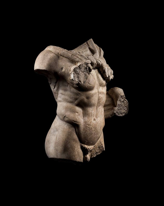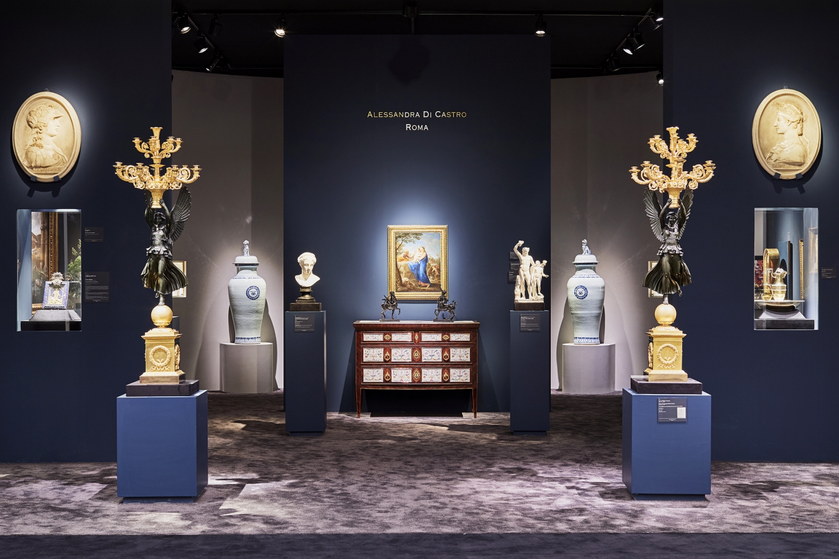 Alessandra Di Castro (slika 4) prihaja iz rimske družine starinarjev z dolgo tradicijo, ki posluje v italijanski prestolnici že od leta 1878. Vhod v rimsko galerijo gleda na Španske stopnice in na TEFAF Maastricht je končno dobila eno najboljših mest na glavni promenadi. Ponudba galerija se je raztezala od antičnega sveta do obdobja Grand Toura, s poudarkom na rimskem klasicizmu skozi zgodovino, od marmorne portretne glave rimske cesarice Livije iz 1. stoletja do izjemnega dela Pompea Batonija Počitek na begu v Egipt iz leta 1758. Klasično usmerjen ljubitelj umetnosti bi lahko dopolnil najimenitnejši rimski cesarski par s portretno glavo rimskega cesarja Avgusta, okronano z lovorjevim vencem, ki je bila na voljo v volumetrično začrtanih prostorih galerije Tomasso Brothers Fine Art. Toda, najbolj slikovita skulptura iz antike je bila na odru Galerie Chenel (slika 5), ki vedno preseneča s scenografsko domišljeno postavitvijo. Torzo Herkula, rimski marmorni kip iz 1.-2. stoletja, je bil postavljen v nišo podobno grotti z zrcalom na zadnji steni, tako da smo mišičnato telo lahko občudovali z vseh strani.