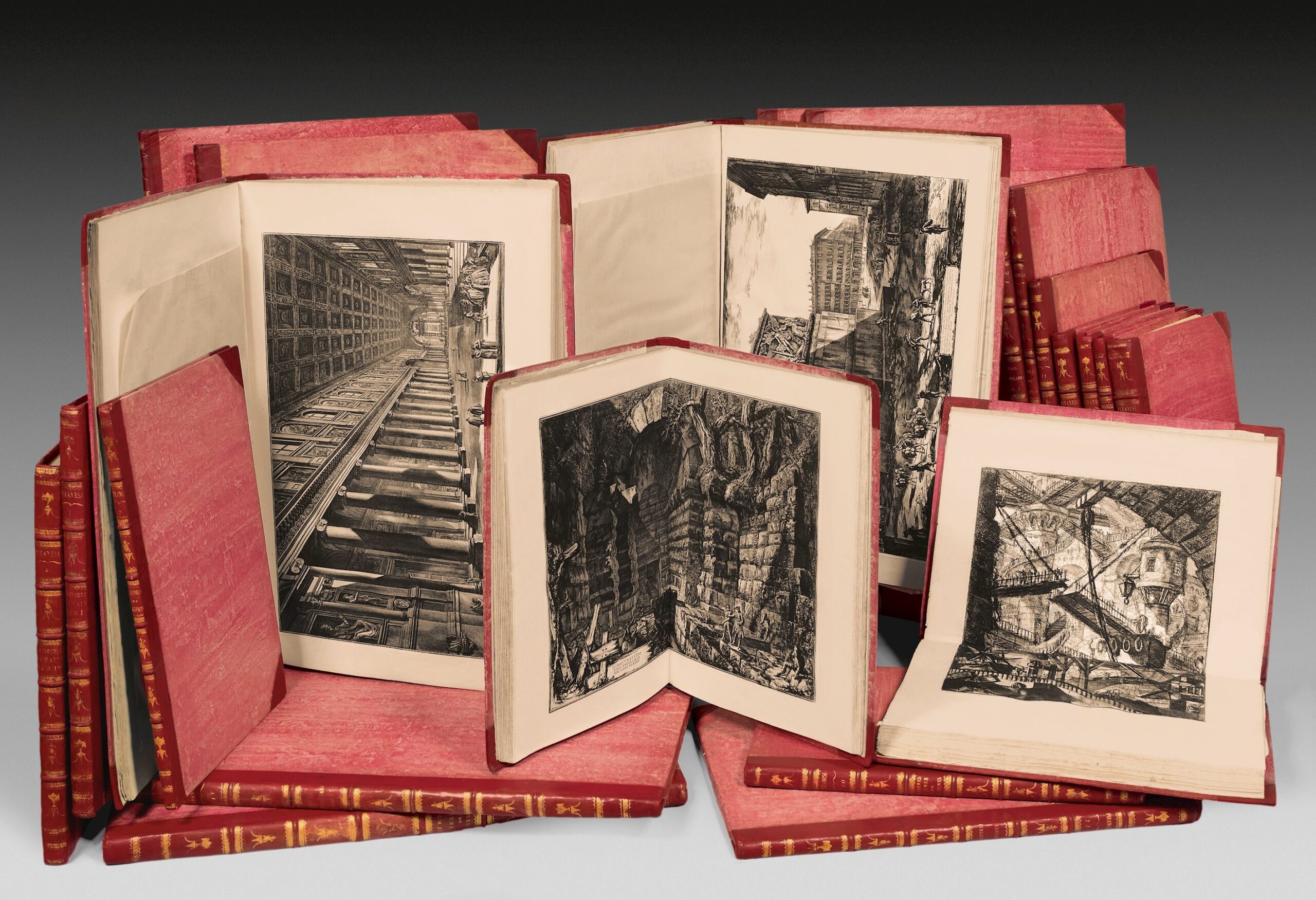 Kar zadeva dela na papirju, je Librairie Camille Sourget (slika 7) ponudila razkošno zbirko tiskov Giovannija Battiste in Francesca Piranesija: 29 del, vezanih v 27 zvezkov v rdečem maroškem usnju, 1189 čudovito ohranjenih gravur (izdal Tessier, Paris, 1804-1807). Pomembna zbirka je bila voljo tudi pri Shapero Rare Books: Description de l’Égypte. Serija publikacij (1809-1829) je želela celovito katalogizirati vse znane vidike starega in sodobnega Egipta, vključno z naravoslovjem. Gre za skupinsko delo civilnih učenjakov in znanstvenikov, ki so pospremili Napoleonovo ekspedicijo v Egipt med letoma 1798 in 1801, kot tudi umetnikov in tehnikov, ki so ga kasneje sestavili v celoto.